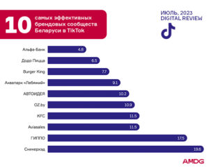 Digital-агентство AMDG поделилось результатами ежемесячного анализа эффективности брендов в соцсетях. В июле на digital-мир повлияло сразу несколько масштабных событий. В новом обзоре расскажем, как A1 знакомил подписчиков с новой соцсетью, какой бренд праздновал день рождения в стиле барбикор, и о чем рассказал 21vek.by в своем мини-сериале в Instagram.