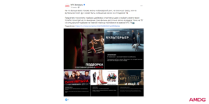 Вовлеченность в аккаунте KFC в июле заметно выросла. Если в июне каждый пост в среднем получал около 4,9 тысячи лайков, то в июле показатель превысил отметку в 12,5 тысячи. Больше стало не только лайков, но и репостов. Среднее число нажатий кнопки “Поделиться” за месяц выросло с 39 до 74 репостов. Несмотря на рост некоторых метрик, комментариев на постах стало значительно меньше. Их количество за месяц уменьшилось примерно на 30%.