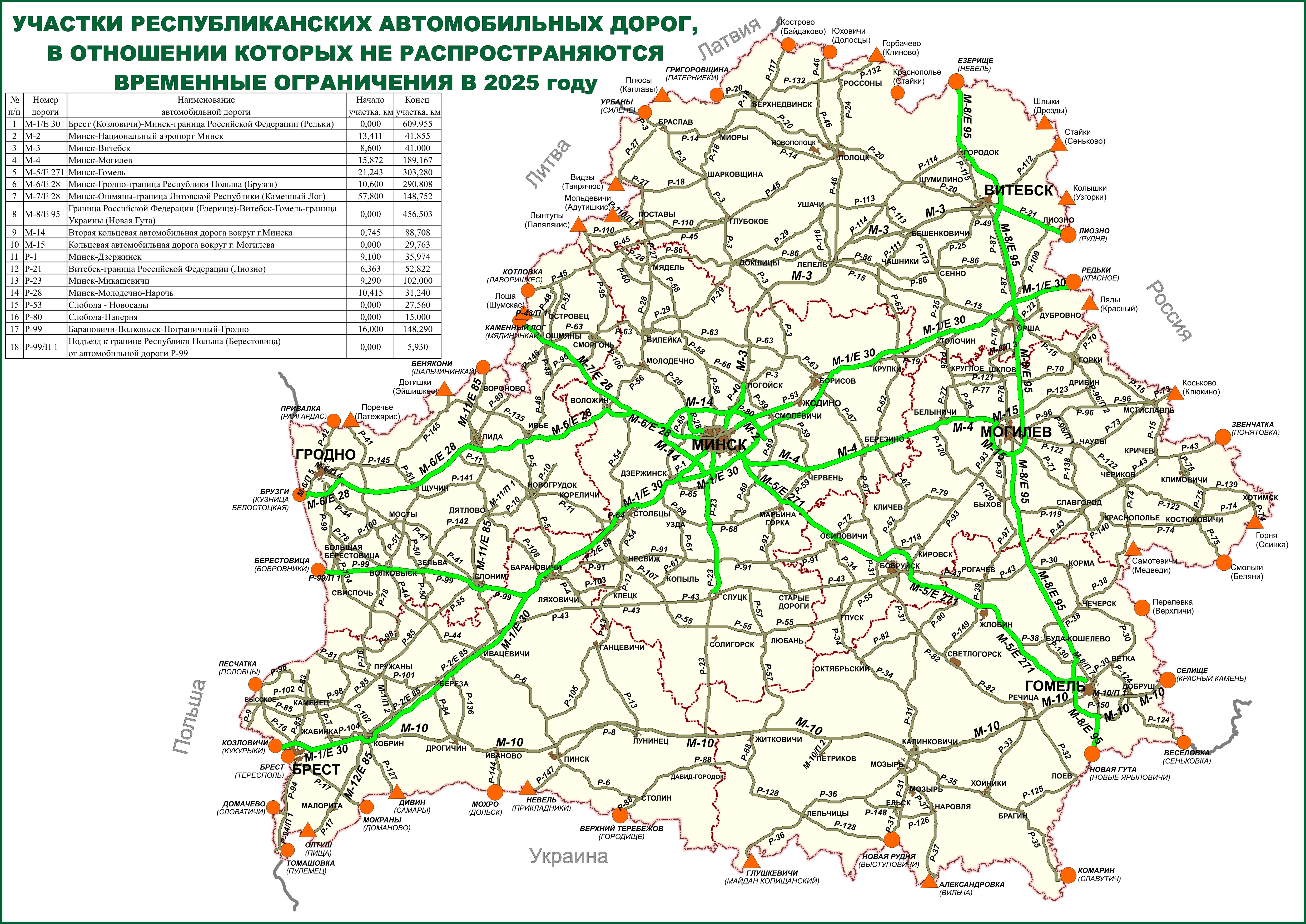 По 31 августа в Беларуси действуют временные ограничения на максимально допустимую нагрузку на ось транспортных средств, введенные Министерством транспорта. Мера касается движения по республиканским дорогам с асфальтобетонным покрытием в дневное время.