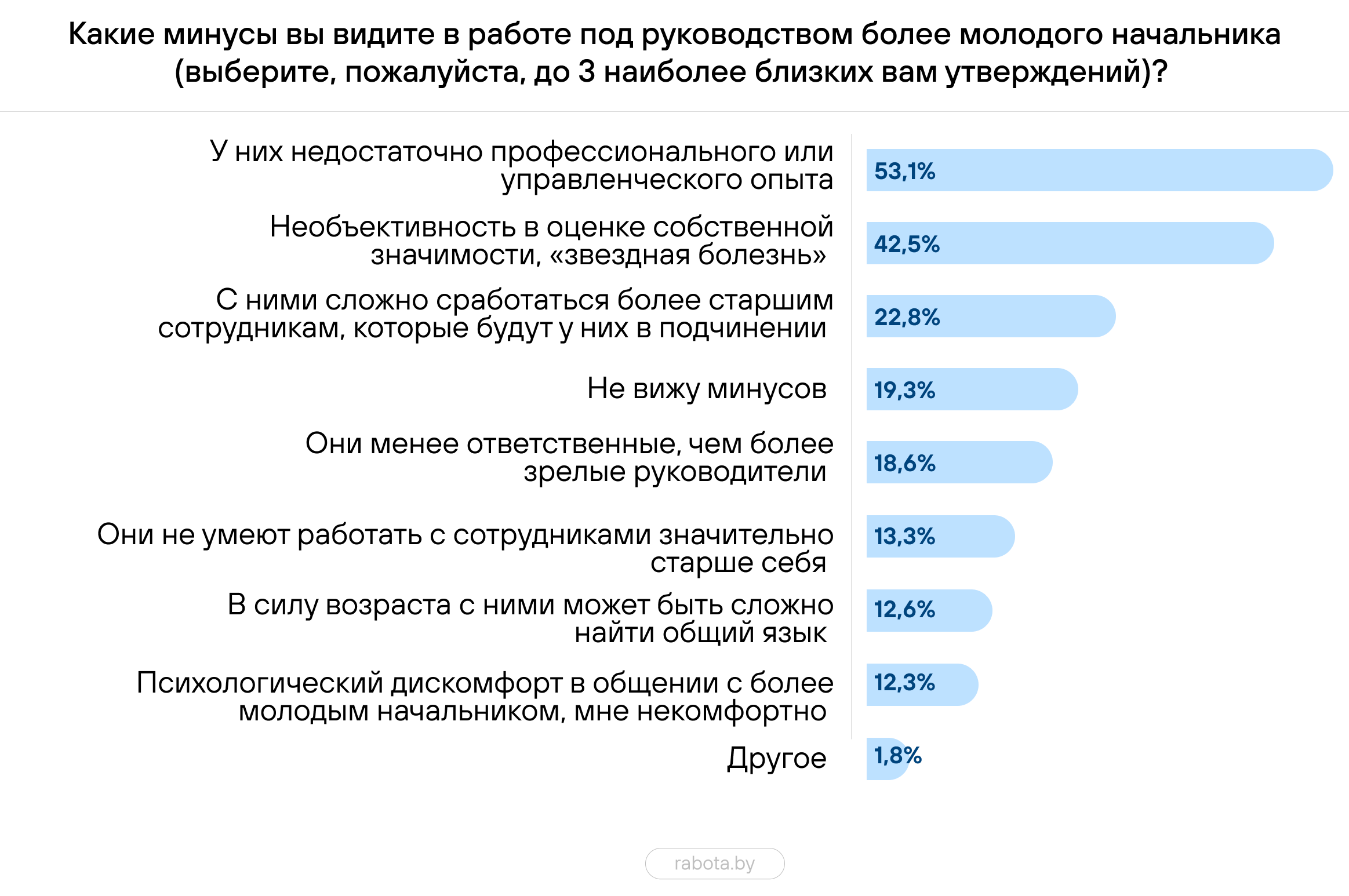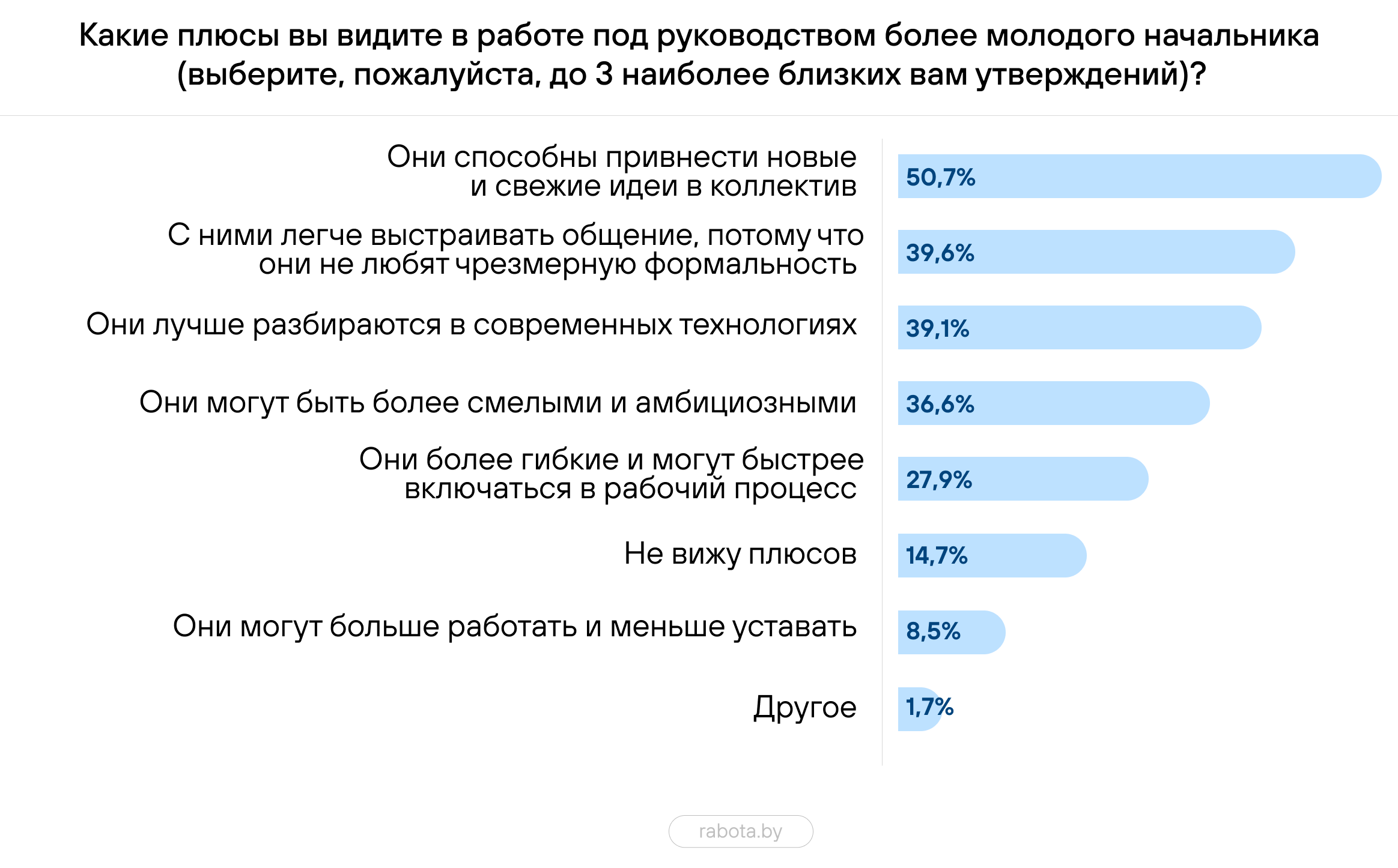 Специалисты сайта по поиску работы и сотрудников rabota.by провели опрос среди 1007 соискателей, чтобы узнать об их отношении к возрасту руководителя.